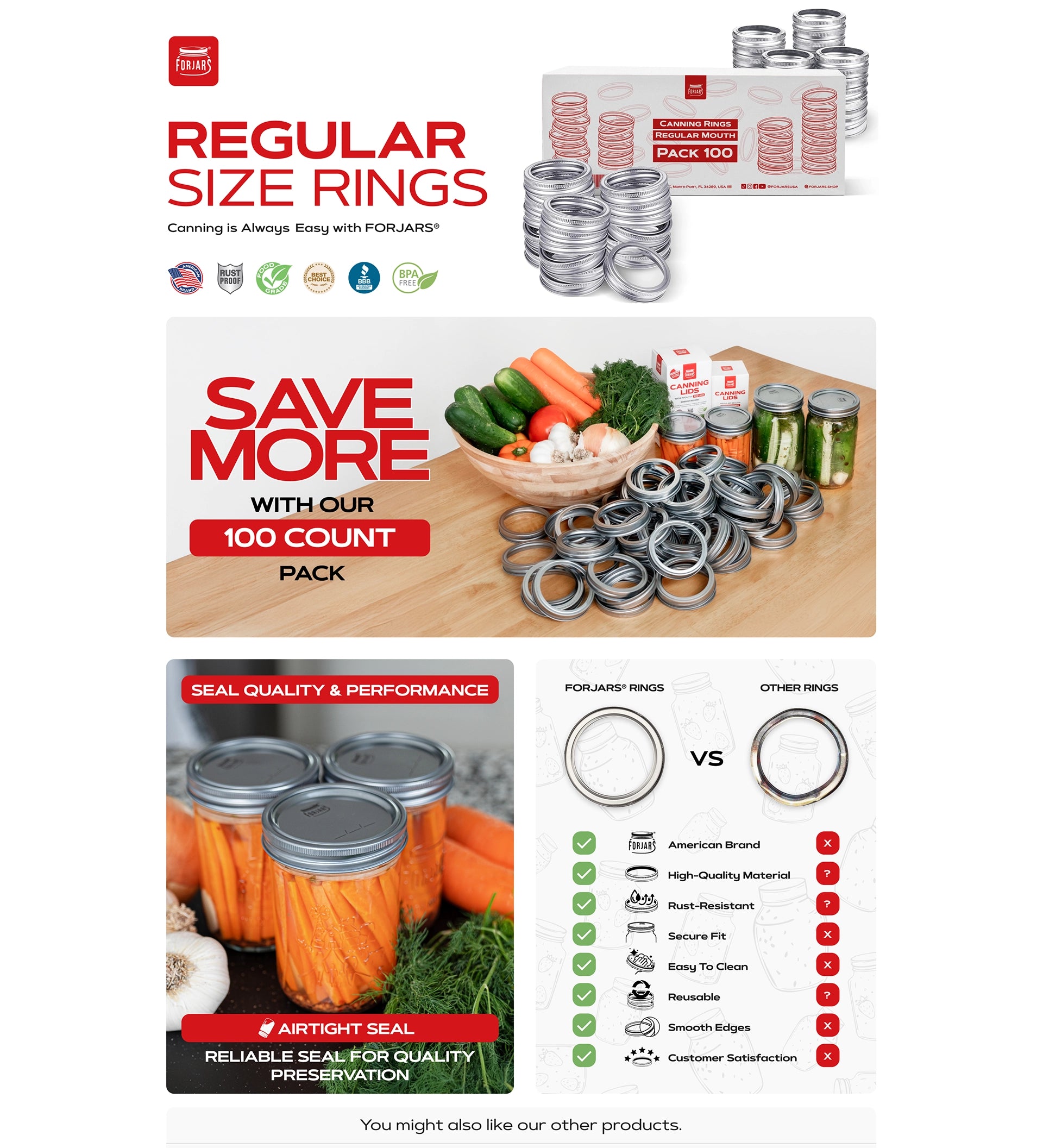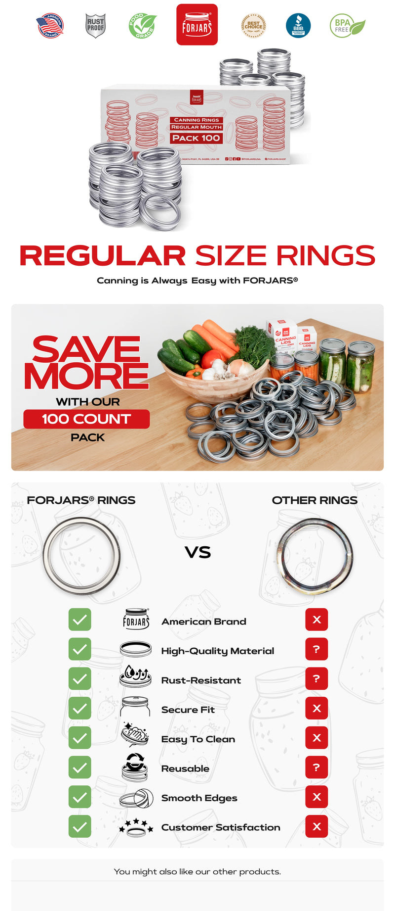 Forjars® Canning Rings are made with high-quality metal to ensure you can maximize the longevity of your rings. With constant reuse of the rings, it is important to have a quality product.