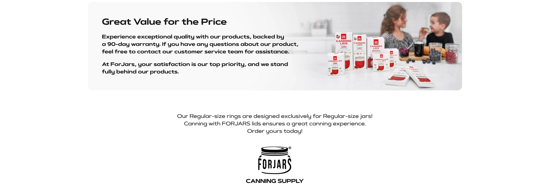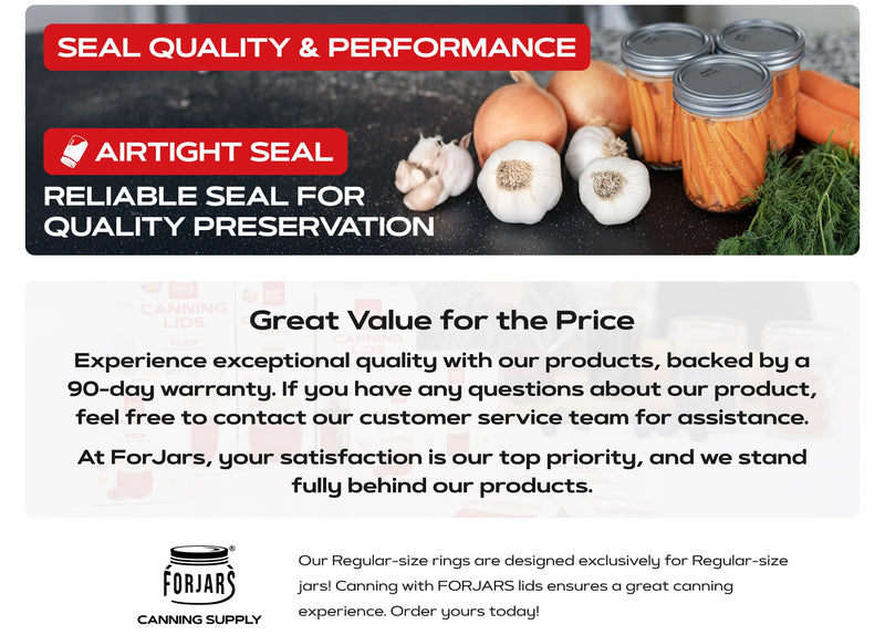 We offer a 90-day guarantee on our products. If your jams and jellies don't seal with our lids - just reach out to our customer support team and we're here for you. Our #1 priority here at Forjars is your happiness. This means we stand by our products 100%, no matter what, no questions asked. Happiness Guaranteed.