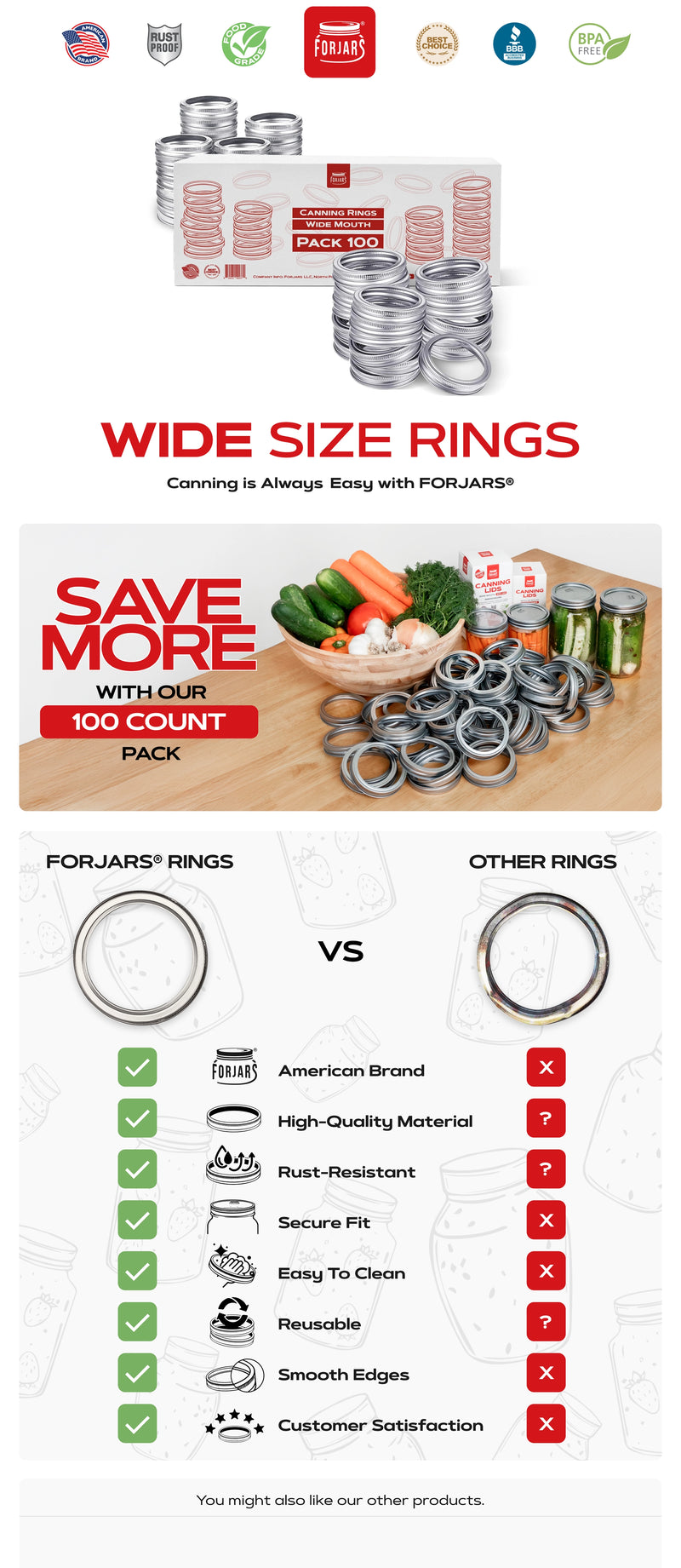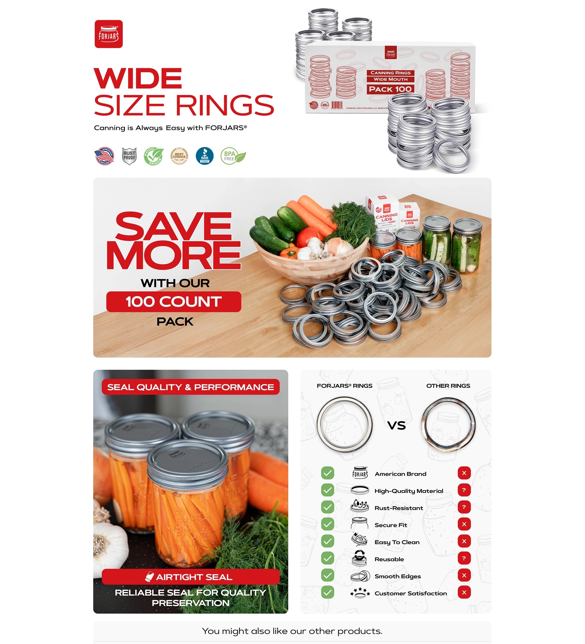 Forjars® - 100 Wide Mouth Canning Lids