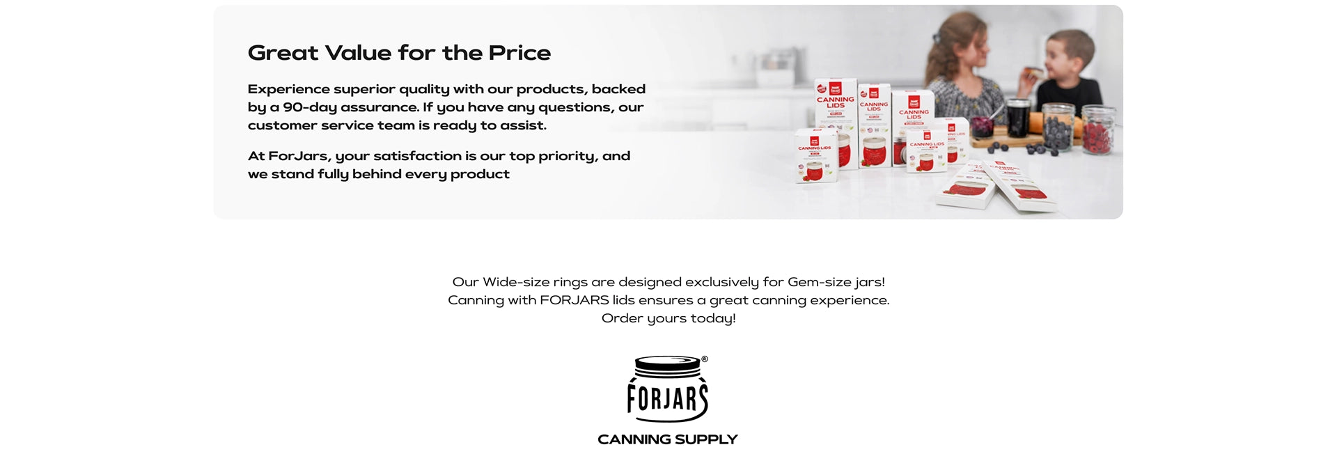 We offer a 90 day guarantee on our products. If your jams and jellies don't seal with our lids - just reach out to our customer support team and we're here for you. Our #1 priority here at Forjars is your happiness. This means we stand by our products 100%, no matter what, no questions asked. Happiness Guaranteed.