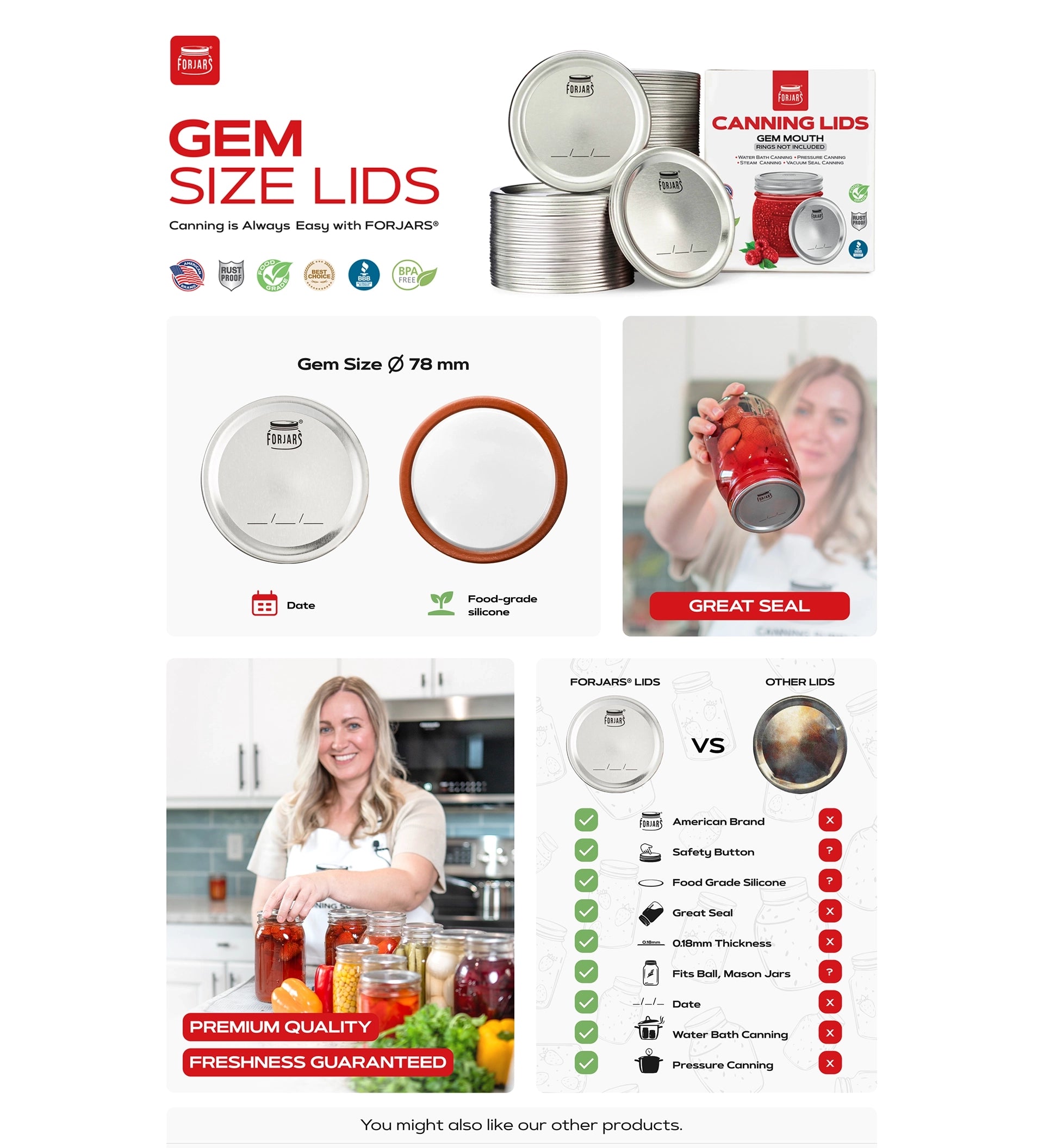 Forjars Canning Lids will hold a tight seal for up to 18 months, so you never have to lose any of the food you have canned. Built for regular and wide-mouth ball jars, these airtight canning lids will offer you the best canning experience you’ve ever had. (Just check out all of our reviews below).