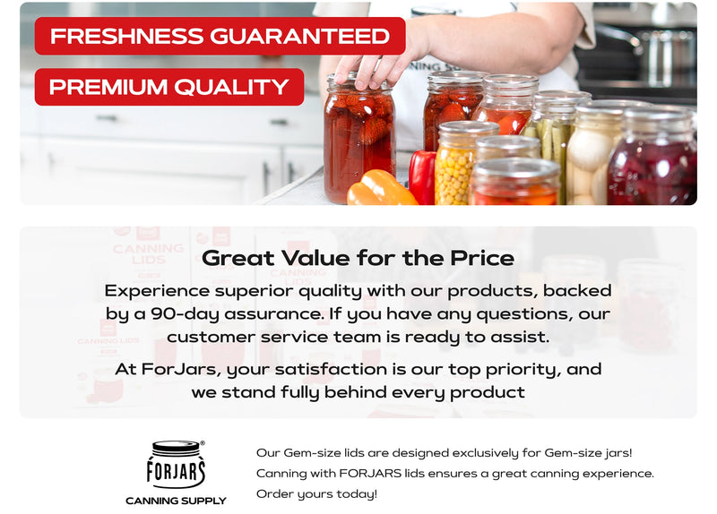 We offer a 90 day guarantee on our products. If your jams and jellies don't seal with our lids - just reach out to our customer support team and we're here for you. Our #1 priority here at Forjars is your happiness. This means we stand by our products 100%, no matter what, no questions asked. Happiness Guaranteed.